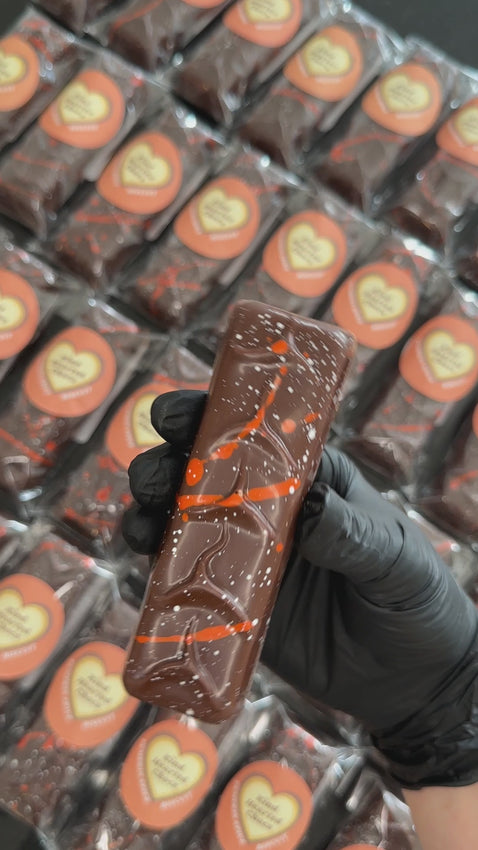 Finished with a layer of crunchy caramelised Lotus biscuit pieces, encased in a delicious milk chocolate shell.