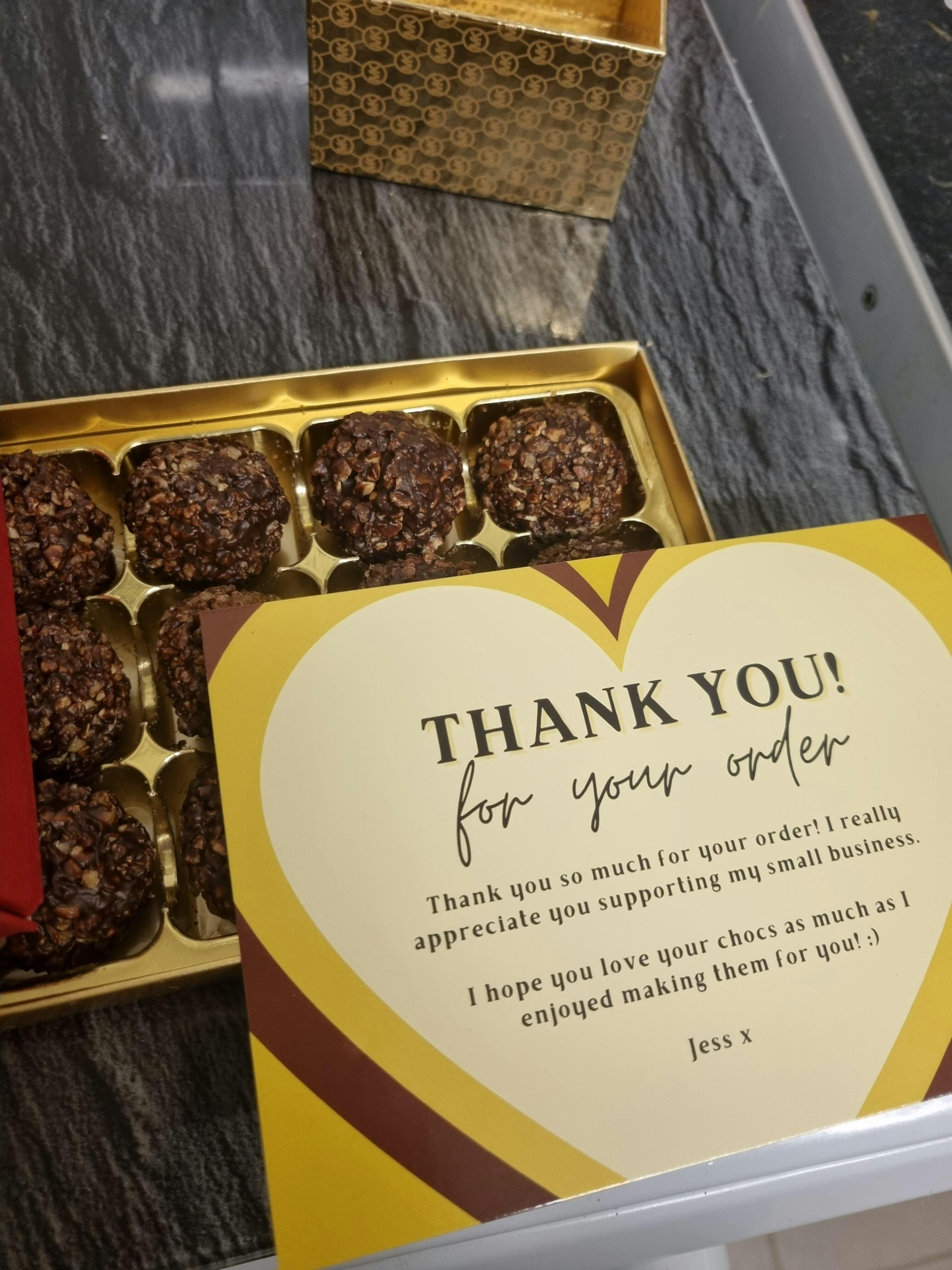 Everything is handmade to order so this ensures when you receive your chocs they are as fresh as possible!